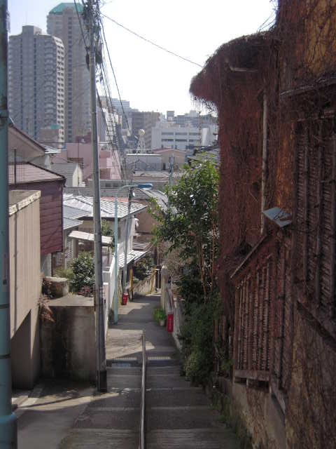 日無坂は階段状なっており古く感じさせ 富士見坂はアスファルトで被われ真直ぐな坂