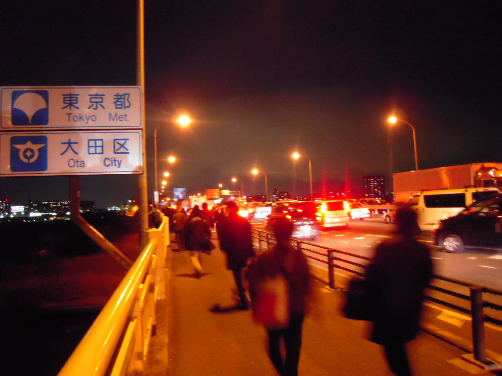 多摩川の橋帰宅困難者なり なんと横浜市から徒歩で東京都心に4時間歩きました 足と腰が筋肉痛なりました