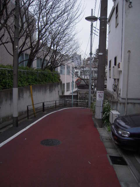 世田谷区岡本、丘え向かう坂 この辺は同じ様な坂多いです。